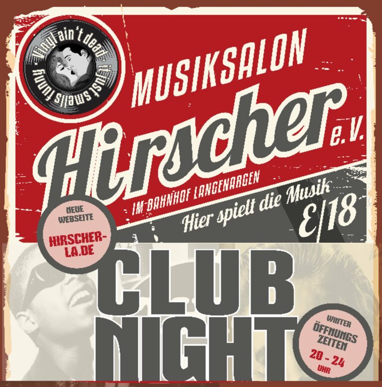 Er ist der Spezialist für gepflegten Clubsound und groovige Lines. DJ Franz liebt die kleine Bühne, hautnah beim Publikum, immer in Kontakt mit der Tanzgemeinde. Deshalb legt er am liebsten in kleineren Clubs auf und sein Thema für den Hirscher am Samstag ist Clubsound aus den 70ern bis heute. Der Bogen spannt sich von Disco, Funk, Soul, über Acid Jazz, Dancefloor, World & Black Music bis hin zu housigen Grooves. Also immer im Rhythmus, wo jeder mit muss. Franz wird gleich um achte loslegen. Gin Tonic und Cuba Libre gibt’s wieder für 6,50- €. Eintritt 5,- € für DJ und GEMA.